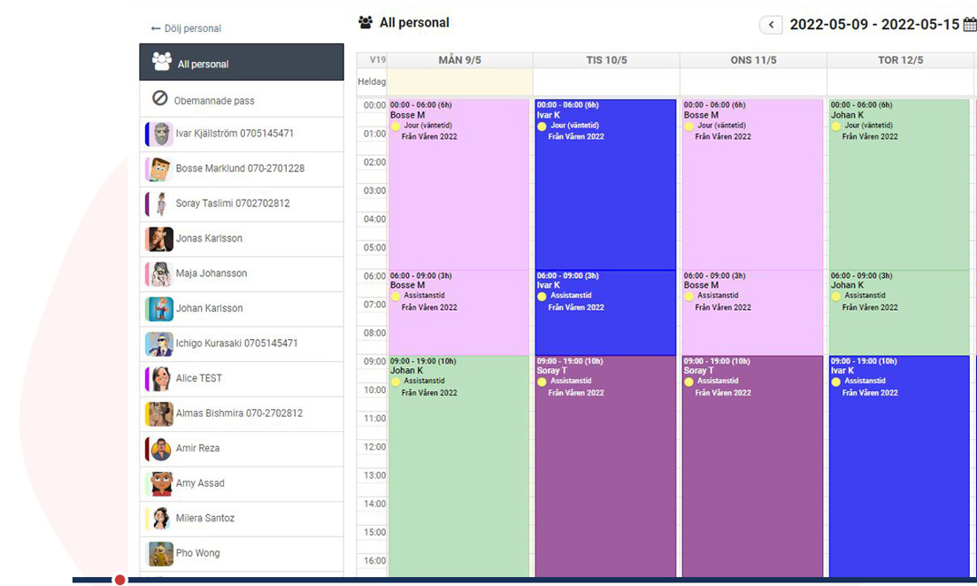 Med Primass schemamodul kan du och dina kollegor hålla koll på när ni ska jobba. Vill du inte logga in och kolla i datorn kan du skriva ut schemat eller ladda ned mobilappen. Vill du bara se dina egna pass kan du filtrera bort de andra.